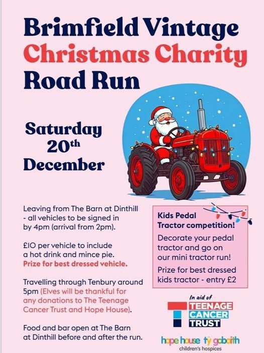Tenbury Wells Christmas Tractor Run route: (please save up your spare change for the ELVES that will be collecting donations for our chosen charities across the whole route!)